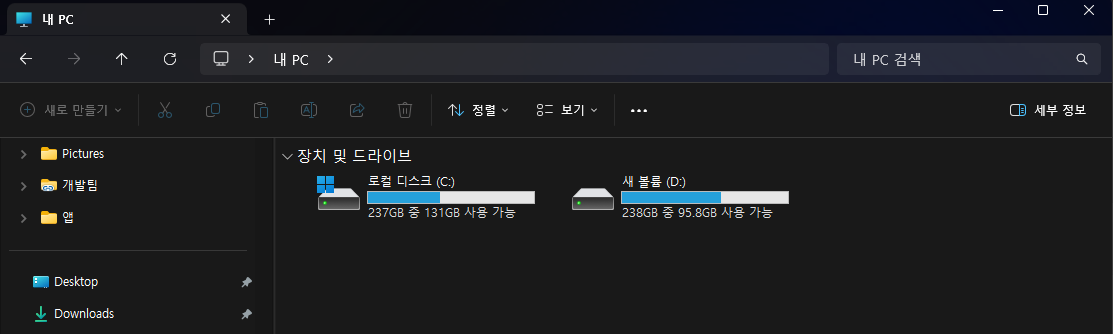 우선은 바탕화면을 정리하고, D 드라이브에 폴더를 깔끔히 정리하는 것을 추천드립니다.