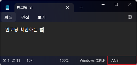 sitemap을 메모장 파일로 연 후, 어떠한 언어로 인코딩 되어 있는지 확인합니다.