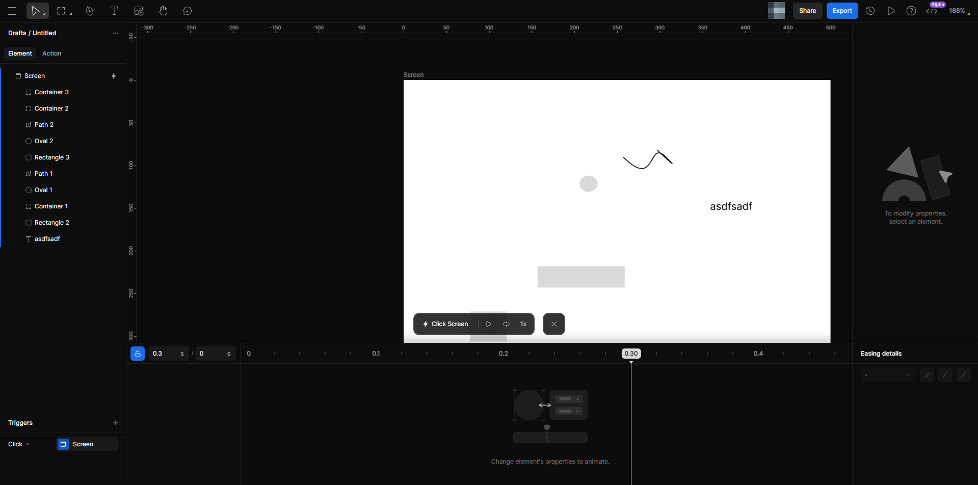 - 타임라인 위에 있는 플레이 버튼을 클릭하여 움직이는 애니메이션을 관찰합니다.