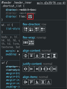 위 개발자 도구의 코드에서 저희가 주의 깊게 보아야할 부분은 display: flex; 우측에 있는 타일 박스입니다.(빨간 박스)