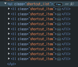 위와 이미지의 빨간 박스에 있는 바로가기 아이콘들이 flex로 정렬된 컨텐츠입니다.