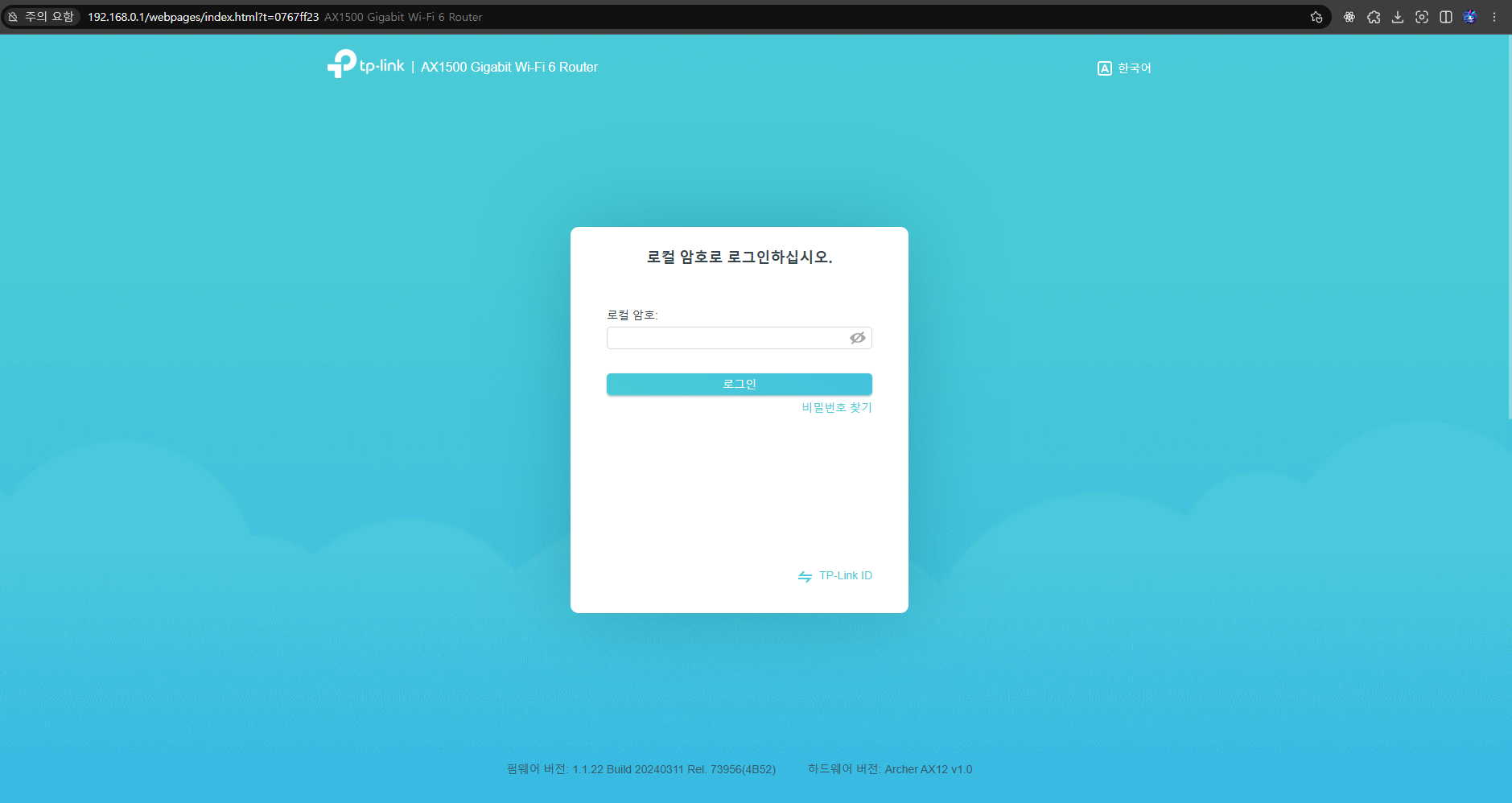 TP-Link의 공유기 설정 페이지는 아래처럼 생겼습니다.
