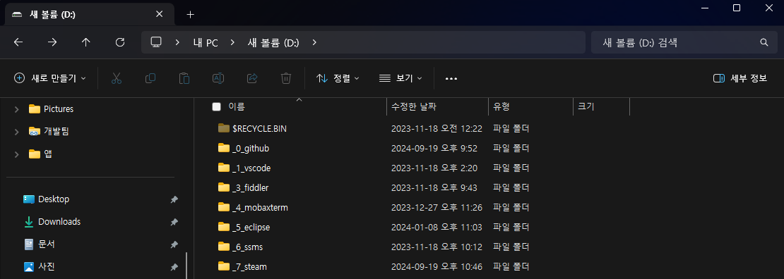 (포맷을 대비해 D드라이브에 폴더를 정리합니다.)
