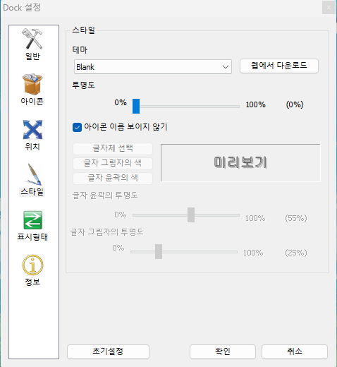 RocketDock을 처음 설치하면 이쁘지는 않습니다.