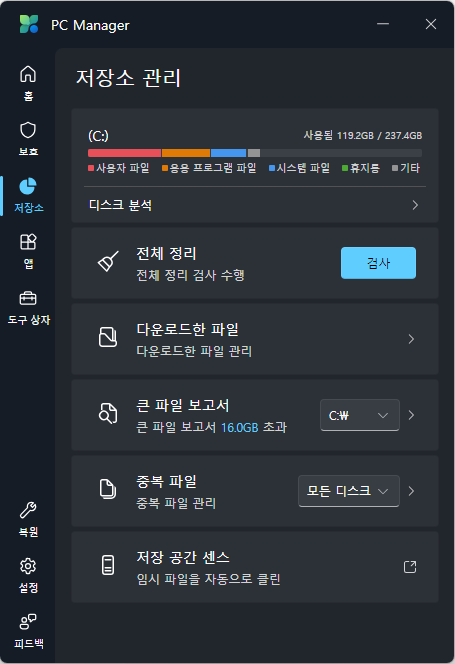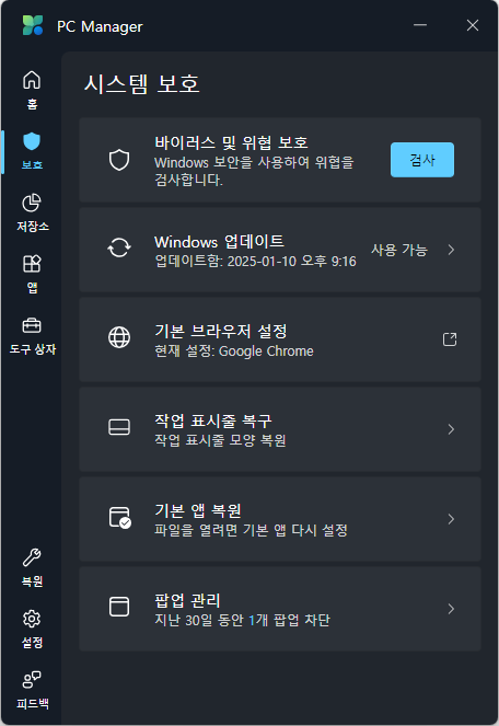 저도 크게 신경 쓰지 않고 있다가 동료 분의 추천으로 "Microsoft PC Manager"의 존재를 알게 되었습니다.