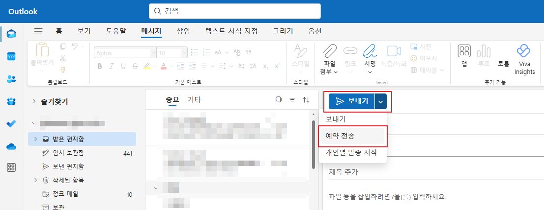 새 Outlook에서 예약 발송하는 법: